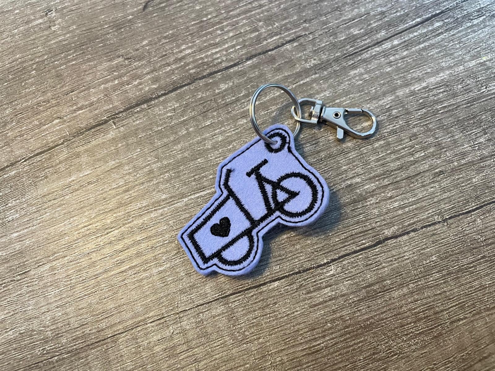 Mooie vilten sleutelhanger, gemaakt met de borduurmachine.
